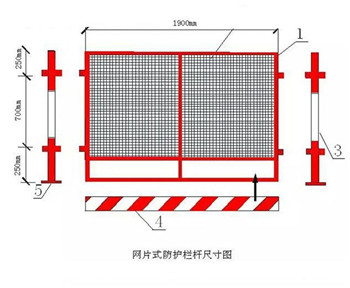 3、工地基坑鋼管護欄可以自上而下用封閉式鋼絲網焊接網面,或在護欄下部焊接高度不低于15cm的擋腳板,接料途經兩頭的護欄需要加掛安全立網。
